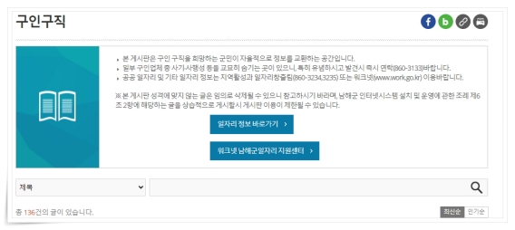 남해군청 구인구직 정보 소개
