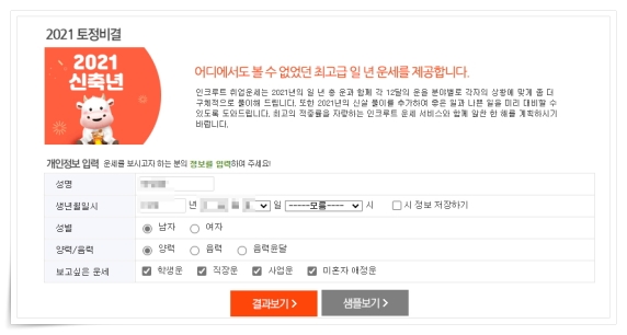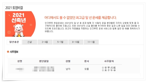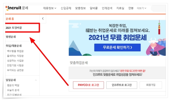 이번 포스팅은 2021년 인크루트 운세 보는 방법을 소개해 드릴게요.