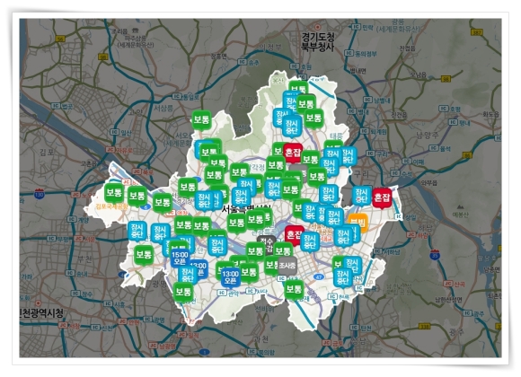 서울시에서는 스마트 서울맵을 통해 선별소의 현재 대기 상태를 알 수 있도록 서비스를 제공하고 있습니다. 지도에서 대기시간 90분 이상은 혼잡, 60분 안팎은 붐빔, 30분 이내는 보통으로 구분하여 대기 상황을 그때그때 알아볼 수 있어요.