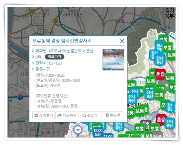 2. 서울시 모든 검사소의 대기 상황을 확인해 볼 수 있는데요. 방문할 검사소를 클릭해 보세요.