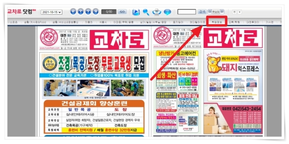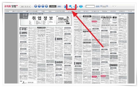 2. 교차로닷컴 뷰어가 실행되면 상단 메뉴 "취업정보"를 클릭해 주세요.